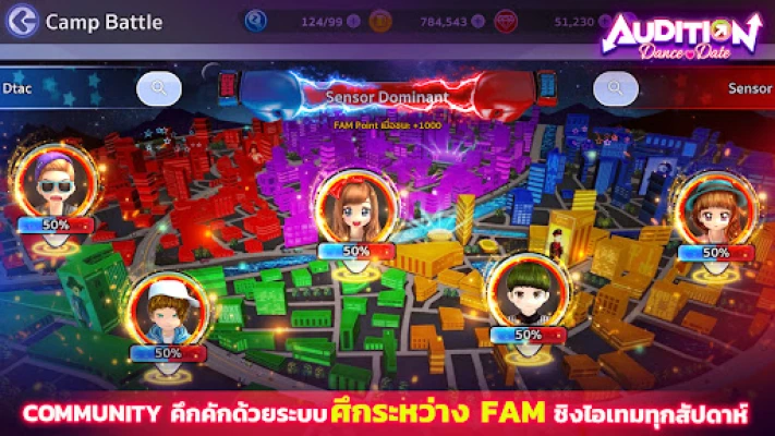 สร้างสรรค์ความสัมพันธ์และขยายเครือข่ายสังคมของคุณในจักรวาลของ "Audition Dance & Date" ที่เต็มไปด้วยชีวิตชีวา ปัดหาเพื่อนใหม่เพื่อออกสเต็ปด้วยกัน หรือค้นหาคนพิเศษเพื่อสานสัมพันธ์กระทั่งร่วมเฉลิมฉลองพิธีวิวาห์ในเกม ซึ่งรองรับความรักทุกรูปแบบ ไม่ว่าจะเป็นการรวมตัวตั้งกลุ่มแฟมสุดซี้ การแชทแลกเปลี่ยนไอเท็ม หรือจัดปาร์ตี้ออนไลน์ การแข่งขันเพื่อไต่แรงก์สูงสุดประจำสัปดาห์หรือซีซันก็รอให้คุณพิสูจน์ฝีมือ รับรางวัลสุดเอ็กซ์คลูซีฟ พร้อมปลดล็อกภารกิจประจำวันที่น่าตื่นเต้น เพื่อการเป็นที่หนึ่งในคอมมูนิตี้ที่อบอุ่นและมีชีวิตชีวาของ Audition Dance & Date