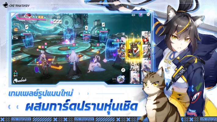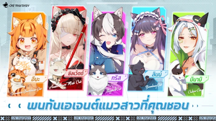 สัมผัสประสบการณ์ RPG เชิงกลยุทธ์แบบเทิร์นเบสในรูปแบบ 3D Anime สุดตระการตา ที่ผสานระบบการต่อสู้ด้วยการ์ดสุดล้ำ คุณจะได้รวบรวมและสร้างสายสัมพันธ์กับเหล่าเอเจนต์แมวกว่า 100 ชีวิต แต่ละตัวละครล้วนมีเสน่ห์เฉพาะตัวพร้อมเรื่องราวเบื้องหลังอันน่าค้นหา ซึ่งได้รับแรงบันดาลใจจากแมวหลากหลายสายพันธุ์ทั่วโลก เสียงพากย์โดยนักแสดงญี่ปุ่นชื่อดังจะมอบชีวิตชีวาให้กับเพื่อนร่วมทีมขนปุยของคุณ เตรียมตัววางแผนกลยุทธ์อันไร้ขีดจำกัด ปลดปล่อยท่าไม้ตายสุดอลังการด้วยการผสมการ์ดเพื่อพลิกสถานการณ์การต่อสู้ และดำดิ่งสู่เนื้อเรื่องอันเข้มข้นที่จะเปิดเผยความลับของมหานครแห่งนี้