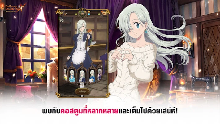 ปลดปล่อยจินตนาการไปกับการปรับแต่งตัวละครที่คุณรัก ด้วยคอลเลกชันเสื้อผ้าและเครื่องแต่งกายออริจินัลสุดพิเศษที่มีให้เลือกสรรเฉพาะในเกมนี้เท่านั้น สร้างสรรค์สไตล์ที่เป็นเอกลักษณ์ของคุณเองให้โดดเด่นไม่เหมือนใคร พร้อมดำดิ่งสู่เรื่องราวที่น่าประทับใจของทวีปบริทาเนีย ซึ่งถูกถ่ายทอดออกมาอย่างสมบูรณ์แบบในรูปแบบเกม โดย The Seven Deadly Sins: Grand Cross ยังนำเสนอเนื้อเรื่องเสริมเฉพาะตัวที่มาพร้อมกับแอนิเมชัน 3D คุณภาพเยี่ยม ให้คุณได้สัมผัสการผจญภัยบทใหม่ที่หาจากที่ไหนไม่ได้อีกแล้ว